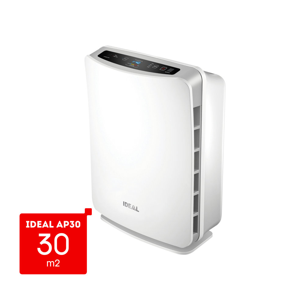 Prečišćivač vazduha sa visoko efikasnim AEON Blue® sistemom za čišćenje – čisti vazduh u zatvorenom prostoru efikasnije od skoro bilo kog drugog prečišćivača vazduha. IDEAL AP30 kombinuje čišćenje pomoću: HEPA filtera, aktivnog uglja i emotovanjem pozitivnih i negativnih jona koji se vezuje za toksine i zadržavaju u plazma filteru. I sve to u jednoj kompaktnoj i moderno dizajnirnoj jedinici. Veoma efikasno filtrira štetne materije iz vazduha: finu prašinu, polen i druge alergene, viruse i bakterije, spore plesni, dlake kućnih ljubimaca, dim cigarete, pa čak i hemijska isparenja i mirise. I sve to radi sa vrlo malom potrošnjom el. energije u izuzetnoj tišini – i zato je optimalan za upotrebu u npr. u kancelarijama, Vašoj spavaćoj ili dnevnoj sobi ali i u medicinskim ordinacijama – gde god se traži ili je poželjan idealan vazduh u zatvorenom prostoru.