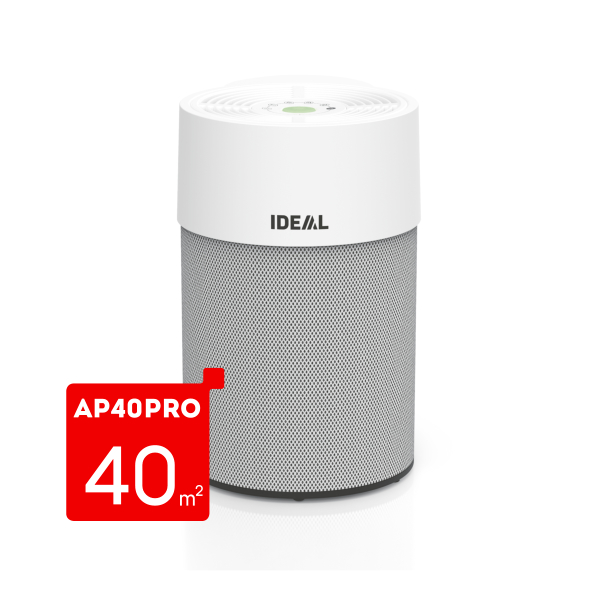 Kompaktni i snažni prečišćivač vazduha AP40 PRO kombinuje moderan dizajn sa efikasnim prečišćavanjem vazduha, uz nisku emisije buke i malu potrošnju el. energije. Konstrukcija uređaja obezbeđuje maksimalan protok vazduha i optimalnu filtraciju. Višeslojni filter od 360 ° filtrira zagađivače poput prašine, čestica (PM10, PM2,5 i sitnih), alergene polena i akarida, patogene kao što su spore bakterija i plesni, dim cigareta, izduvni gasovi (takođe NO2), hemijska isparenja ( Formaldehid, toluol, n-butan, HOS, …) i uklanja neprijatne mirise iz vazduha. Centralna kontrolna tabla EASY-TOUCH pruža jednostavan izbor režima rada kao što su automatski režim, nivo 1/2/3, turbo i noćni režim jednim dodirom. Ostalim funkcijama poput funkcije tajmera, zaključavanja za decu, statusa filtera ili prilagođavanja automatskog režima može se upravljati putem odgovarajuće aplikacije za mobilni telefon „IDEAL AIR PRO“. AP40 PRO Vas automatski obaveštava kada treba promeniti filter. U proseku, filter od 360 ° mora se promeniti nakon 12 meseci, u zavisnosti od intenziteta upotrebe.